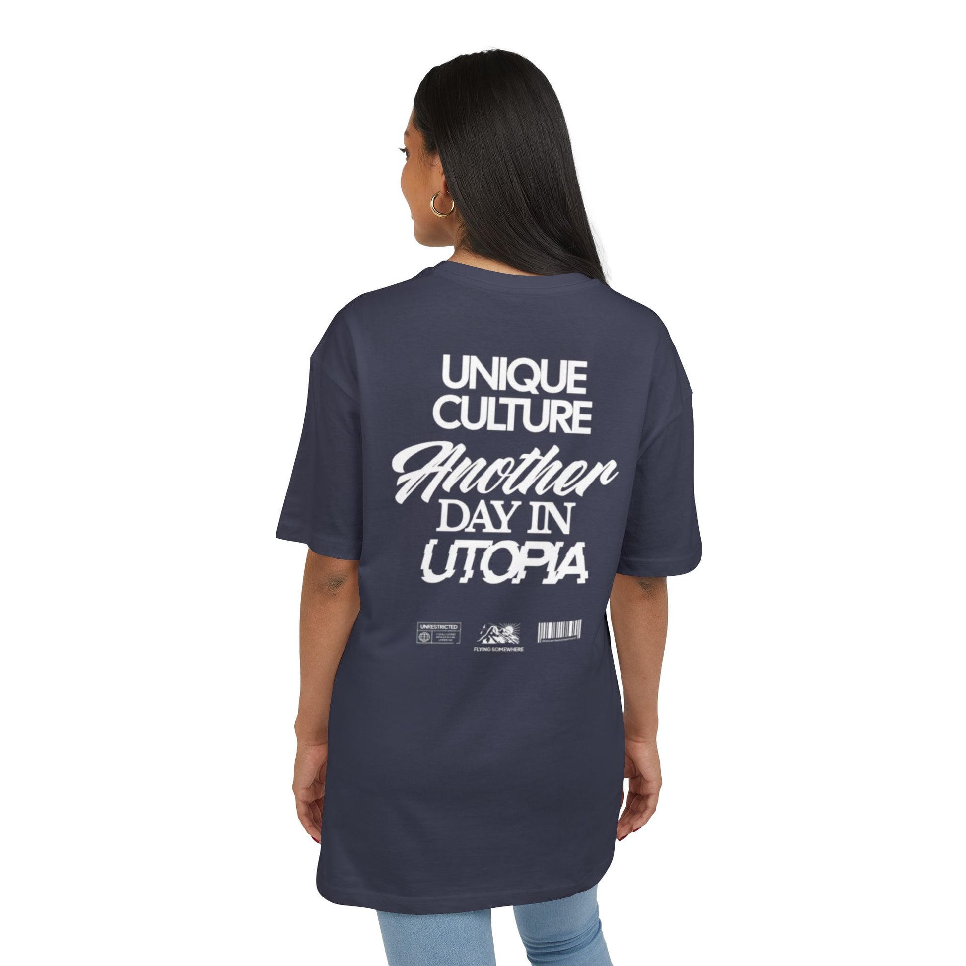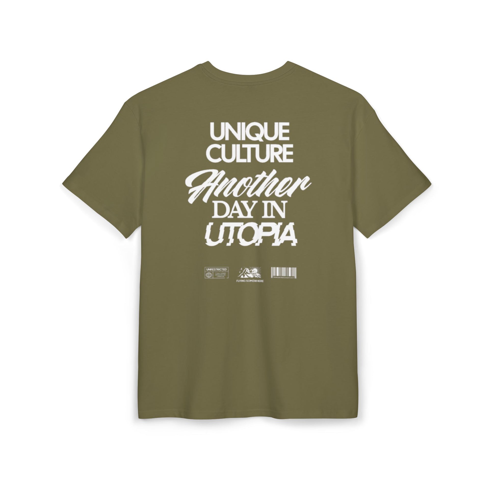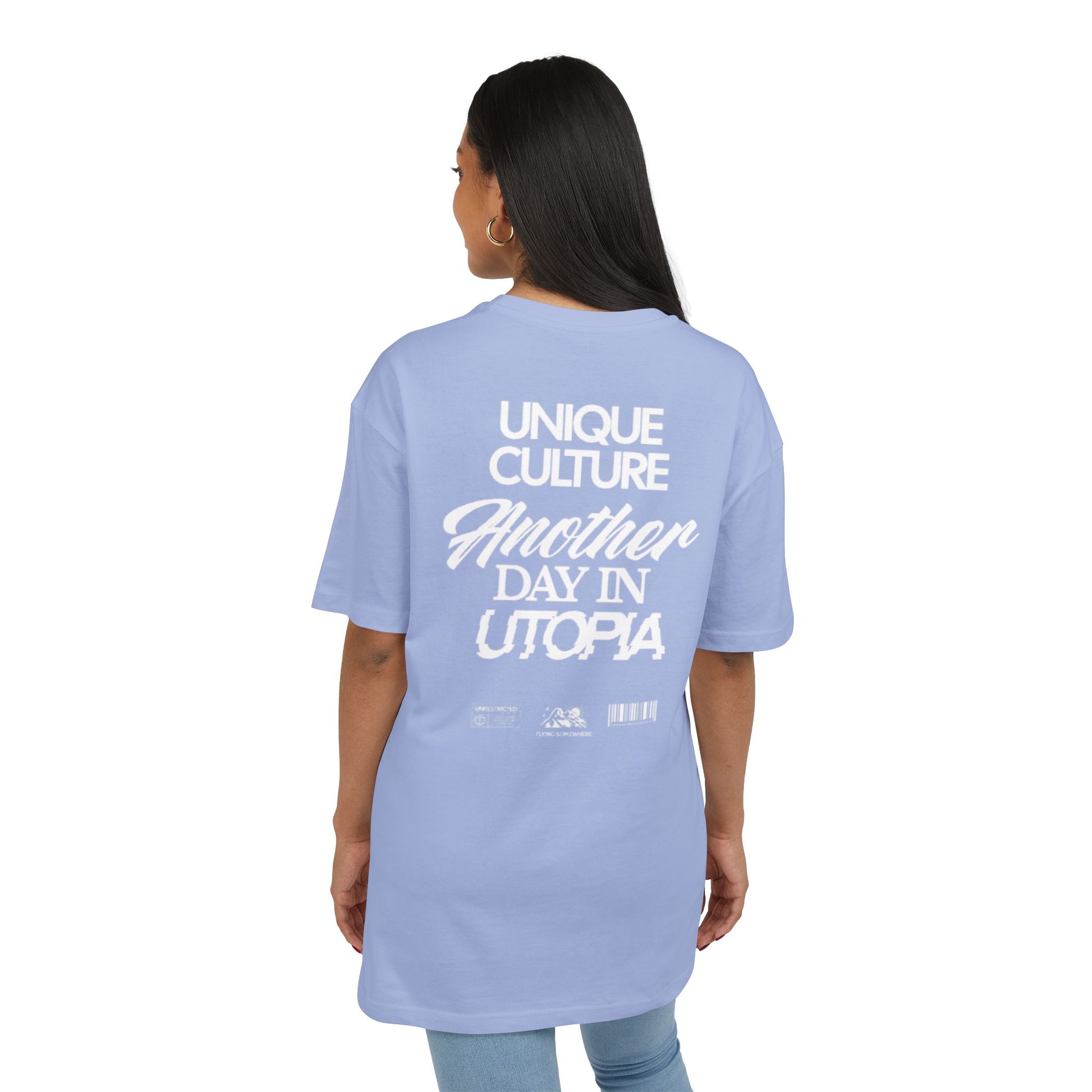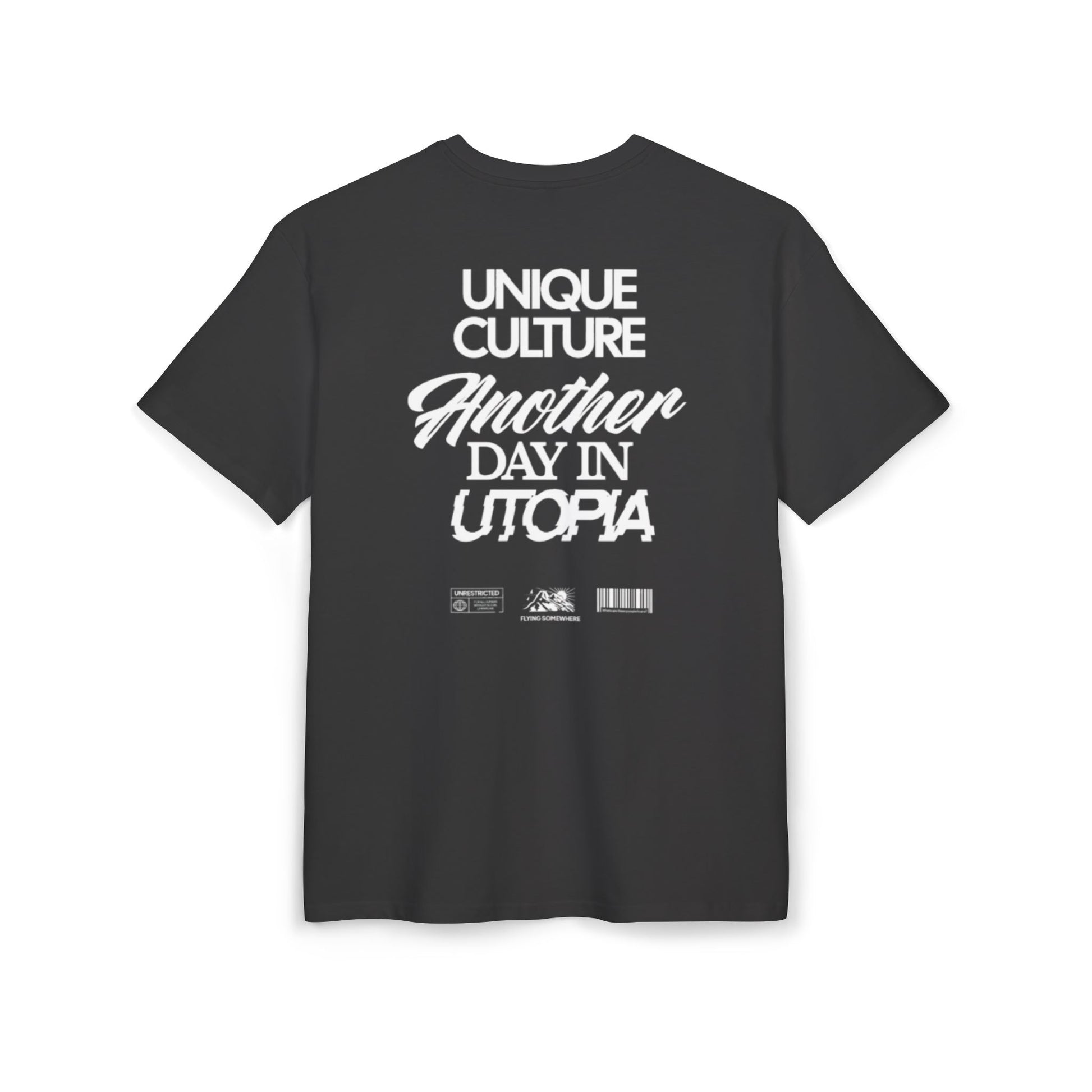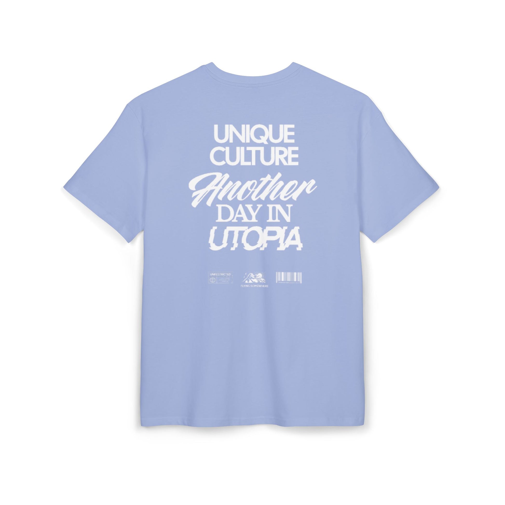 A roomy, heavyweight tee that feels like a reliable companion. This wide-fit crewneck drapes with relaxed dropped shoulders and a substantial 7 oz cotton body that holds shape and print with confidence. It’s the kind of shirt you reach for when you want something that reads calm and considered — oversized without being sloppy, crisp white that pairs easily with denim, layered under a flannel, or worn solo on slow mornings. The sewn-in neck and side labels add subtle durability, while the smooth, tightly spun cotton keeps prints looking clean wash after wash. Wear it to stretch out on the weekend, to carry you through creative studio days, or to anchor a pared-back, lived-in wardrobe.